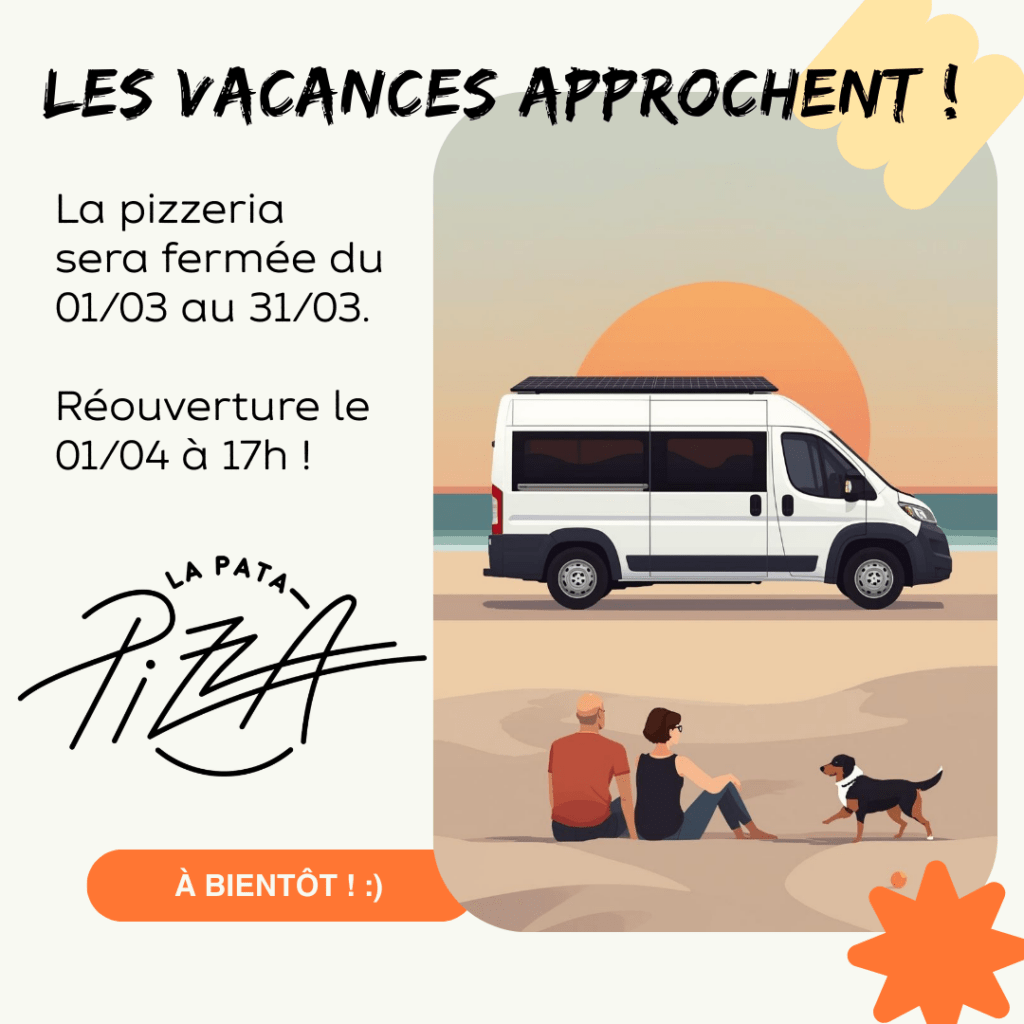 – Pizzas uniquement à emporter – ouvert du mardi au dimanche de 17h à 21h (22h le vendredi et samedi soir) –